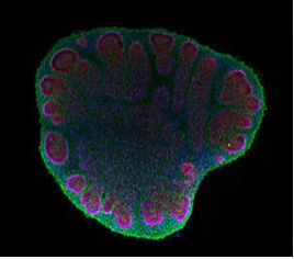 Cross-section of a two-month-old cerebral organoid observed under a fluorescence microscope
